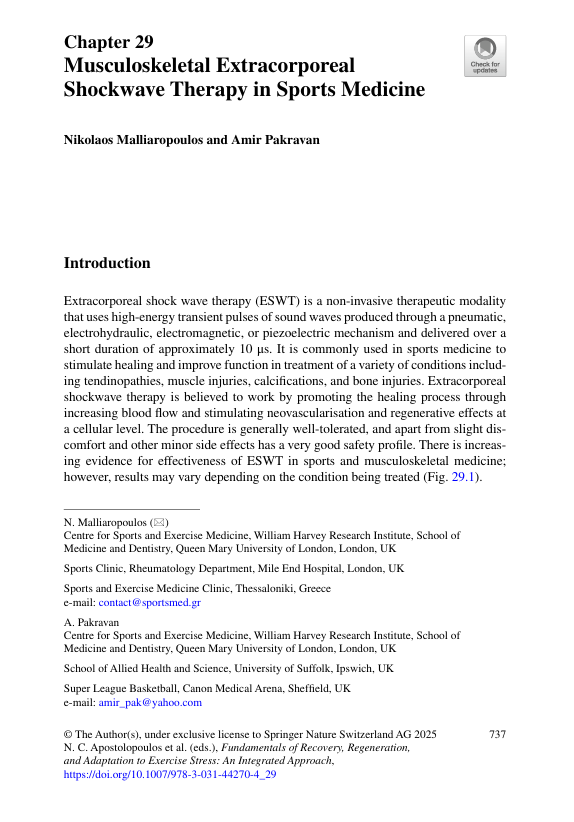 . Book Chapter: Musculoskeletal Extracorporeal Shockwave Therapy in Sports Medicine.