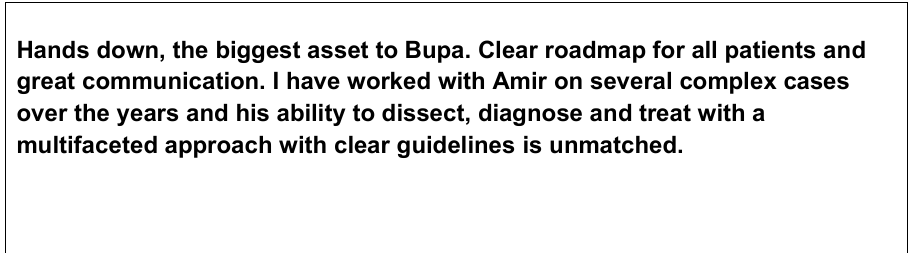 This service is available to both privately insured and self funded clients. Dr Pakravan is fee assured for his services under most major private health insurance providers.